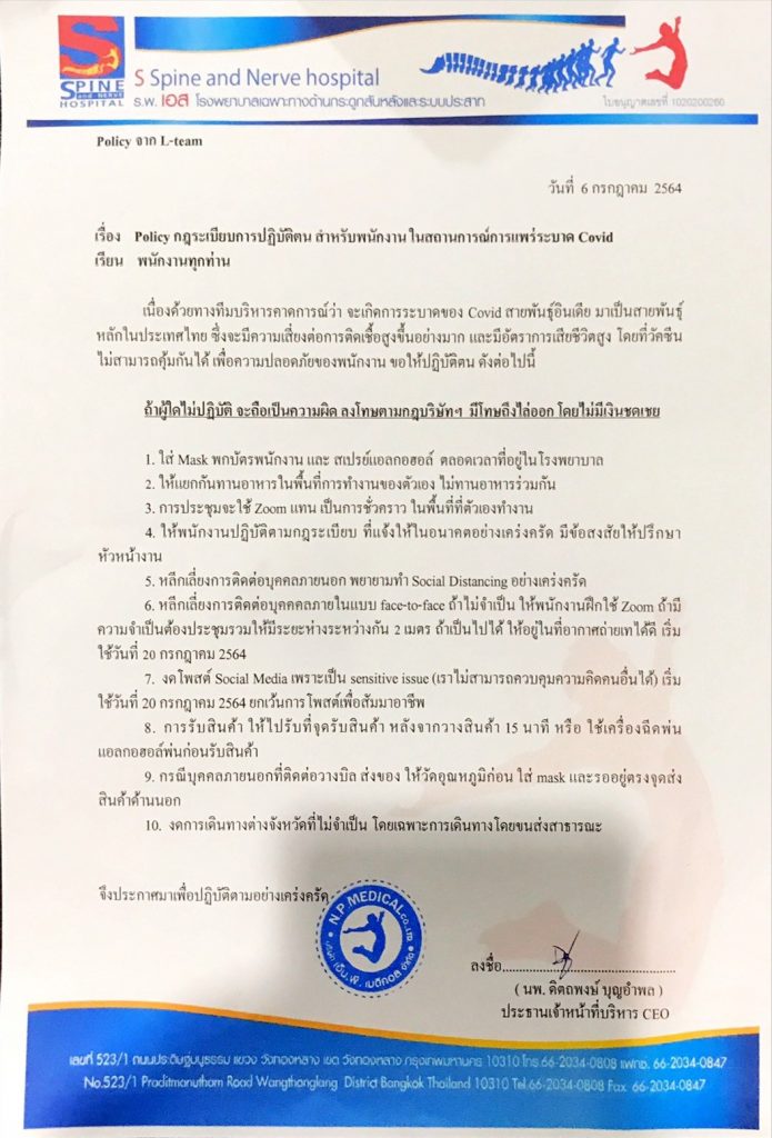 ประกาศ เรื่อง Policy กฎระเบียบการปฏิบัติตน สำหรับพนักงาน ในสถานการณ์การแพร่ระบาด Covid (แก้ไขประกาศฉบับเดิม)