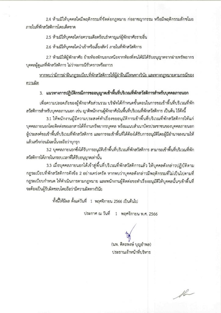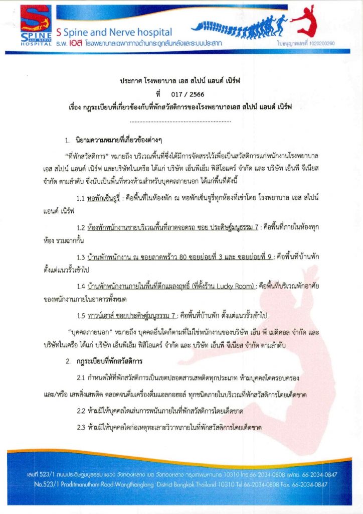 กฏระเบียบที่เกี่ยวข้องกับที่พักสวัสดิการของโรงพยาบาลเอส สไปน์ แอนด์ เนิร์ฟ