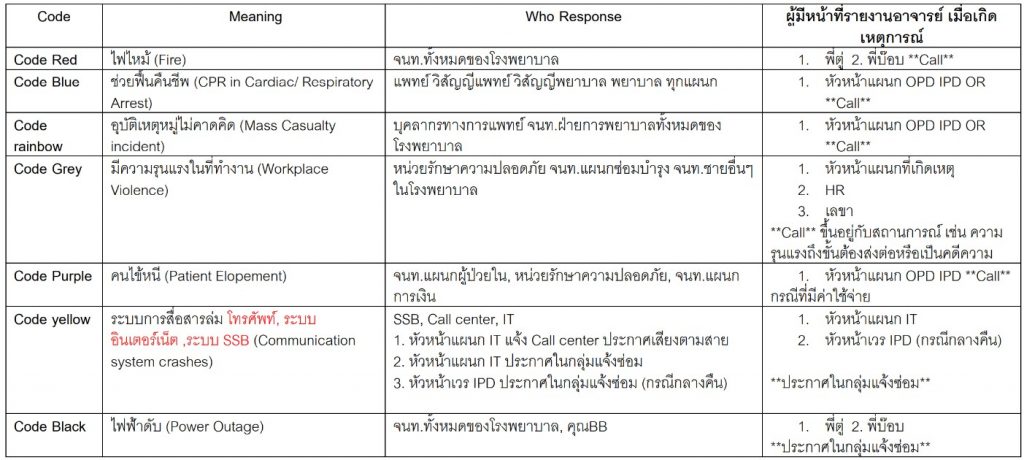 0 responses on "ขั้นตอนปฏิบัติ เมื่อประกาศ Emergengy Color Code"