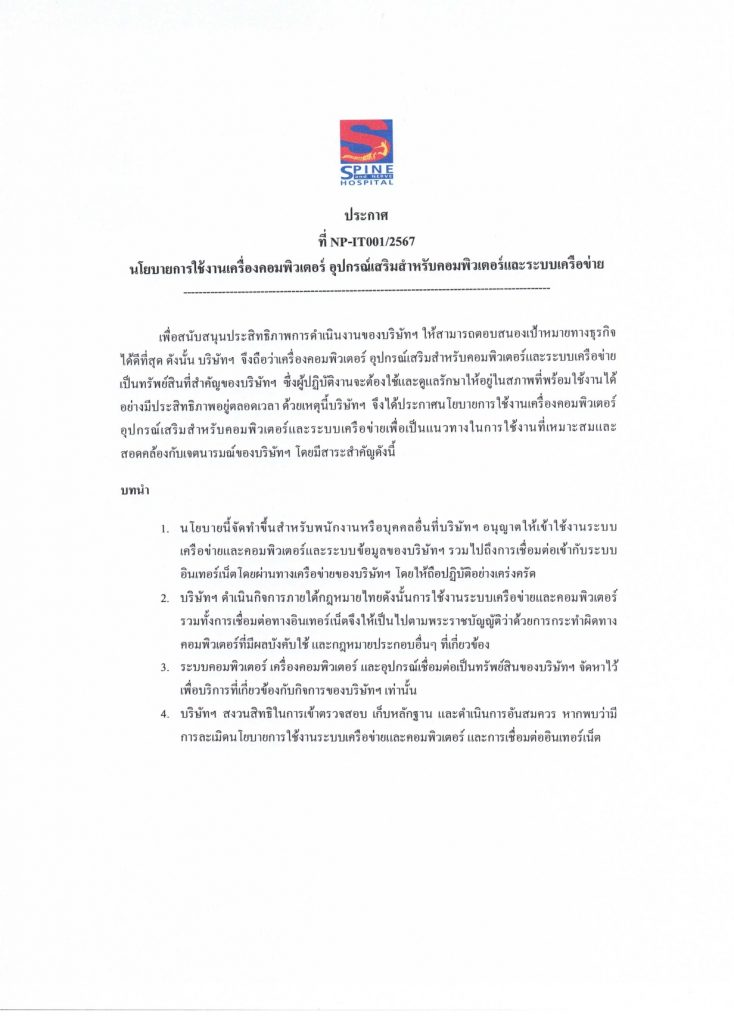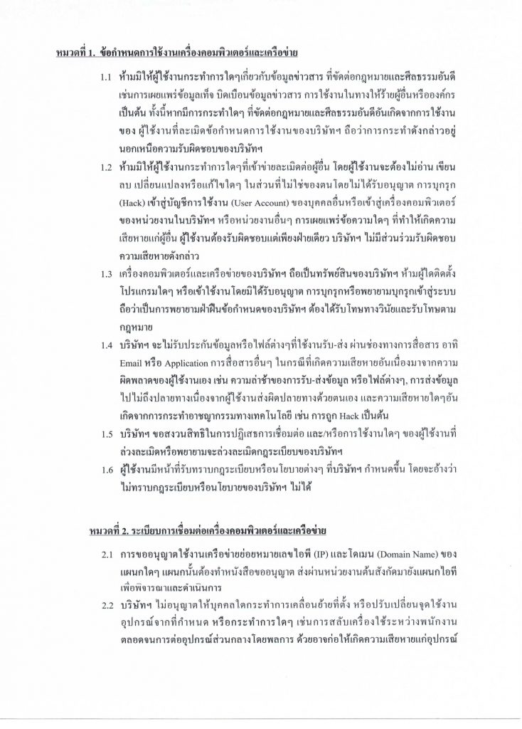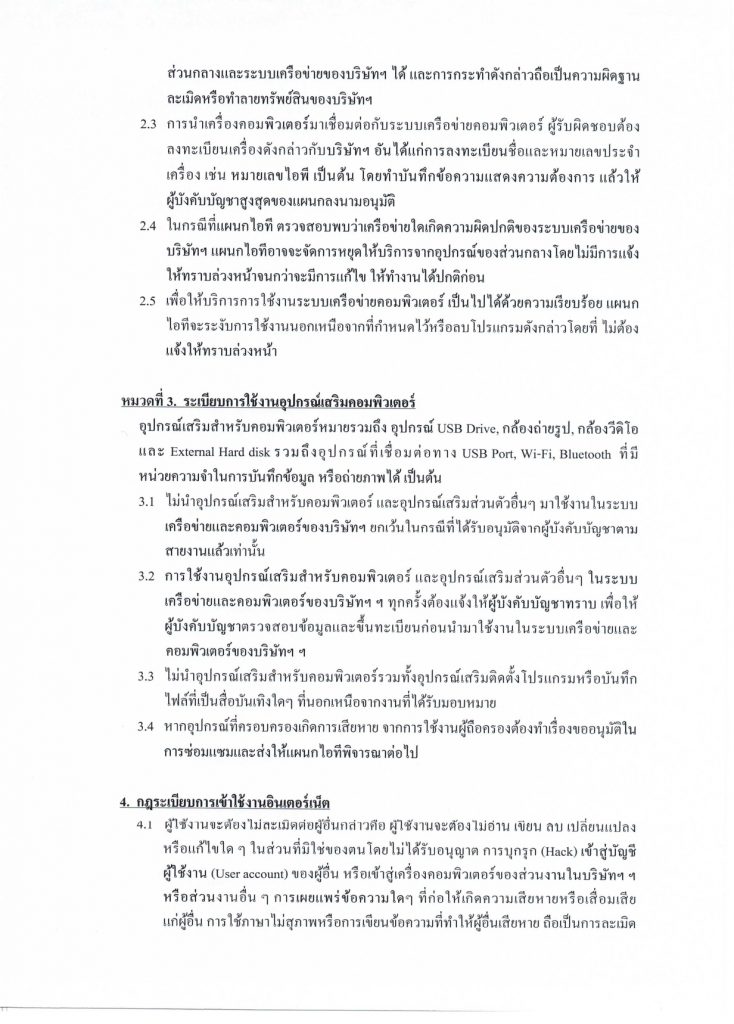 นโยบายการใช้งานเครื่องคอมพิวเตอร์ อุปกรณ์เสริมสำหรับคอมพิวเตอร์และเครือข่าย