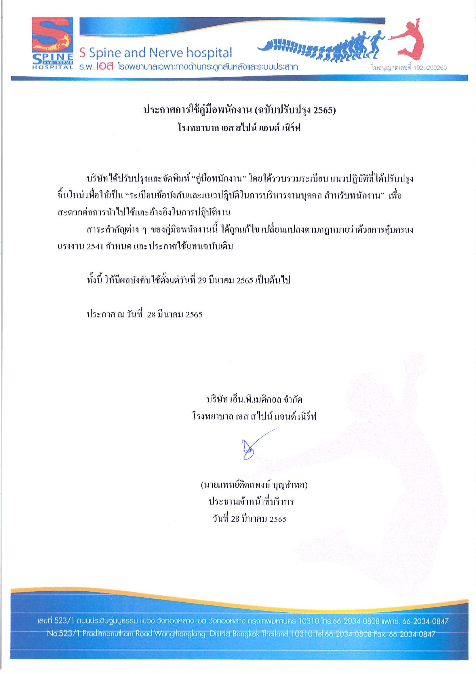 ประกาศ การใช้คู่มือพนักงาน (ฉบับปรับปรุง 2565)