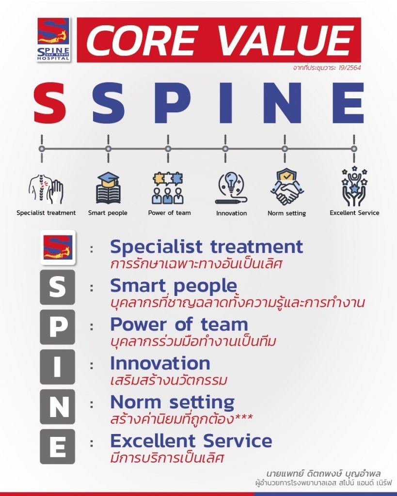 0 responses on "ประกาศ core value ฉบับใหม่ ของโรงพยาบาล เอส สไปน์ แอนด์ เนิร์ฟ"