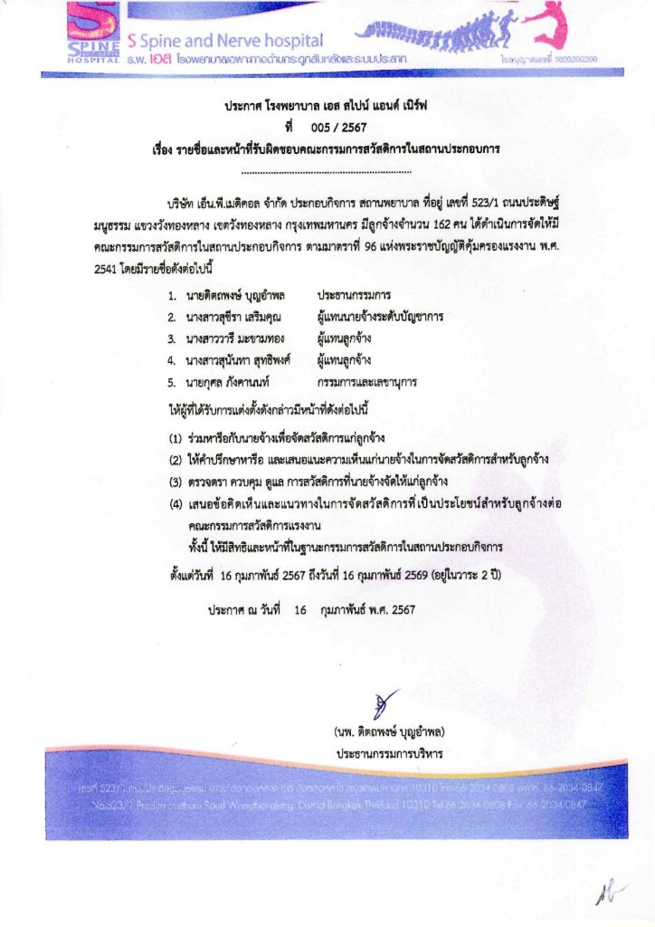 รายชื่อและหน้าที่รับผิดชอบคณะกรรมการสวัสดิการในสถานประกอบการ