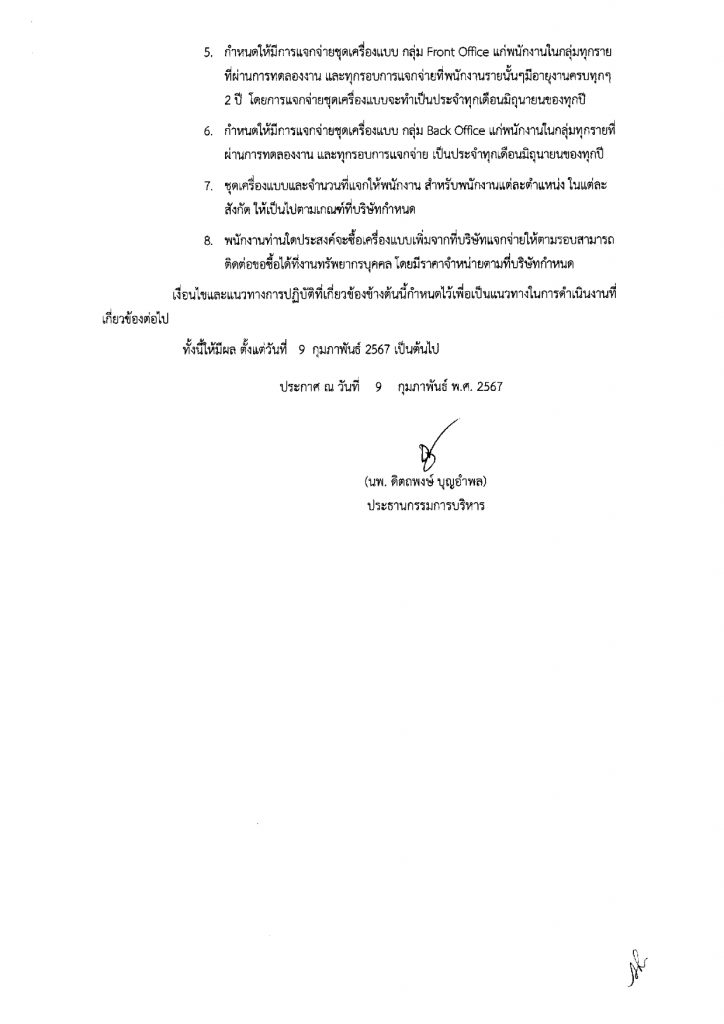 สวัสดิการเครื่องแบบพนักงาน