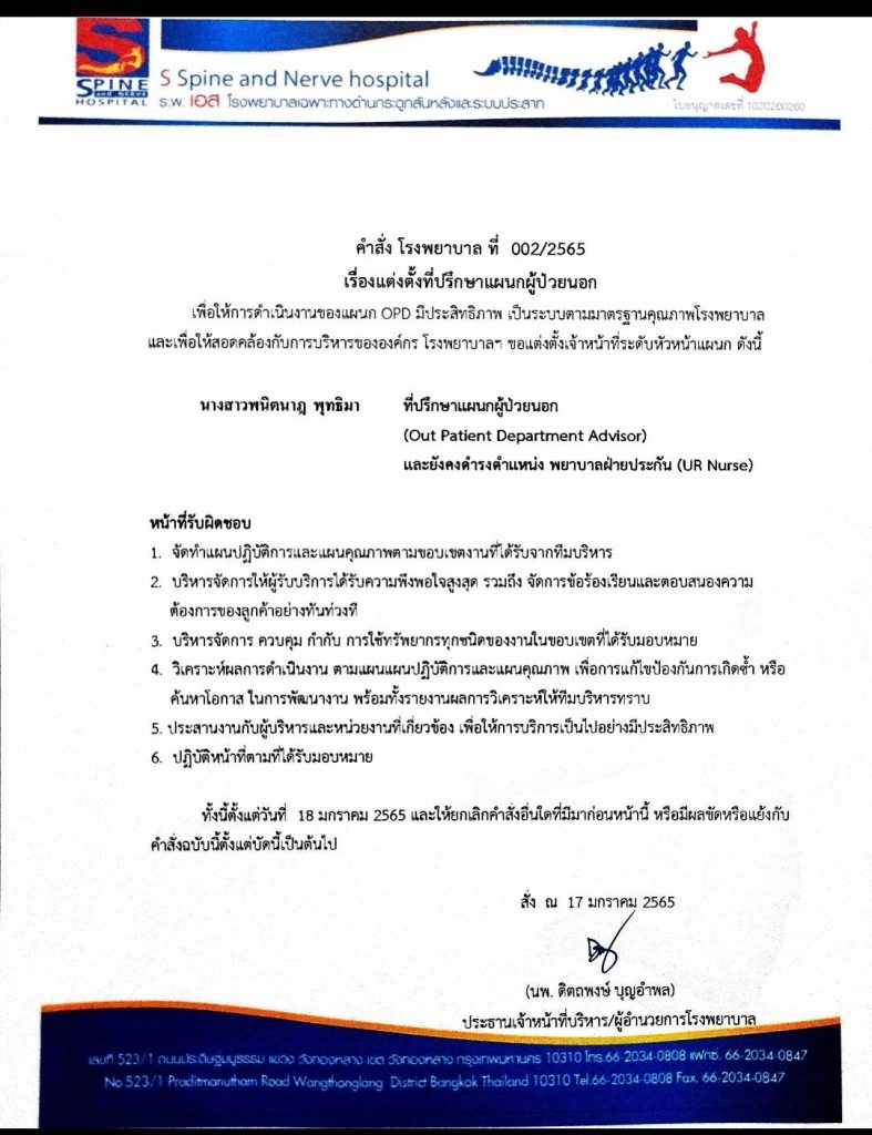 แต่งตั้งที่ปรึกษาแผนกผู้ป่วยนอก