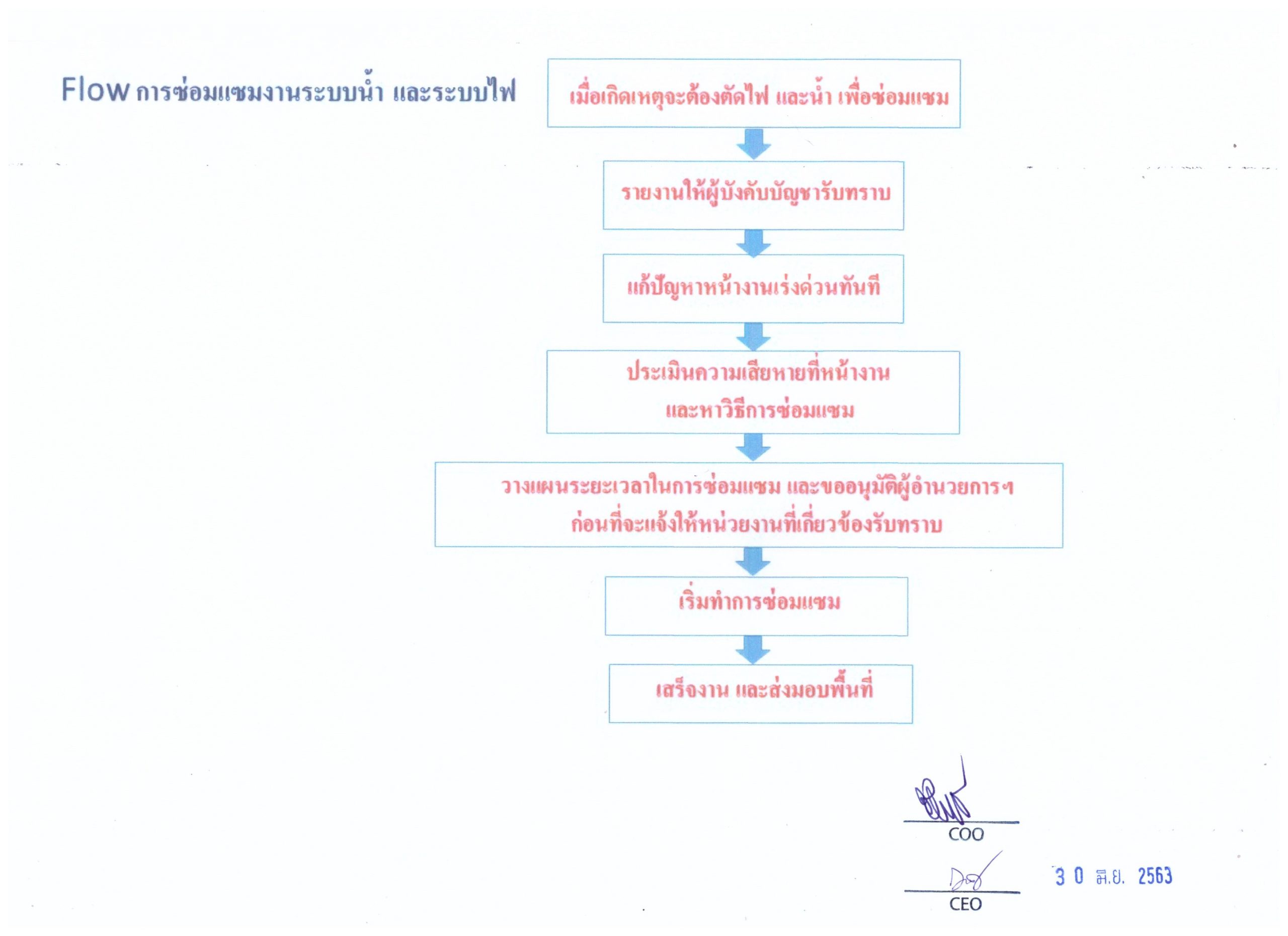 Flow การซ่อมแซมงานระบบน้ำและระบบไฟ(เมื่อมีเหตุต้องตัดน้ำตัดไฟเพื่อซ่อมแซม)
